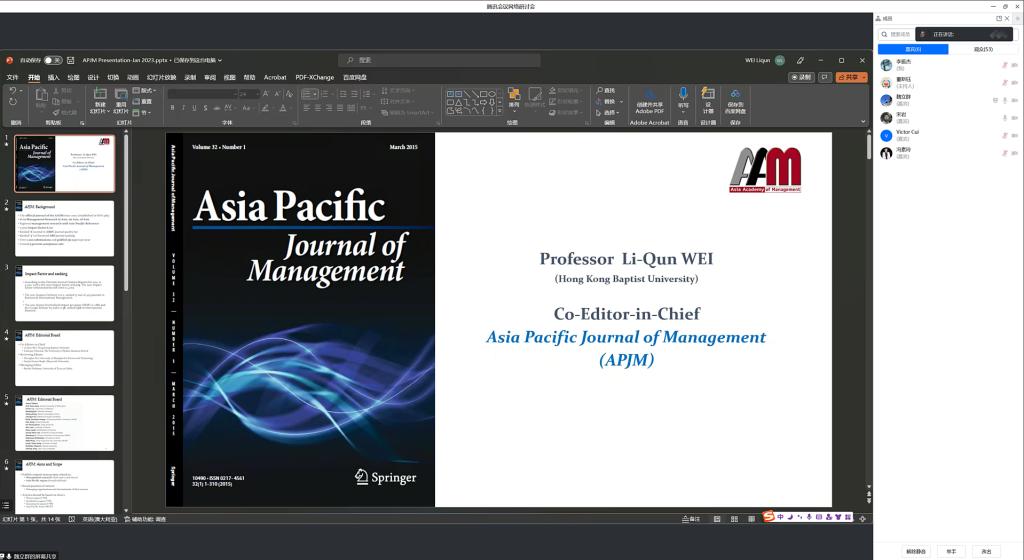 4月1日,由亚太管理学报 (《Asia Pacific Journal of Management》)主办、麻豆av 承办的论文研讨工作坊成功举办。研讨会采用线上腾讯会议的形式,邀请了《亚太管理学报》各领域资深编辑的参与,包括...
