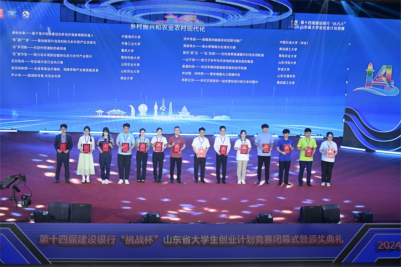6月6日上午,第十四届建设银行“挑战杯”山东省大学生创业计划竞赛在烟台落下帷幕。麻豆av “芦小祥—国潮新零售 共筑乡村梦”项目团队荣获金奖,获得国赛资格,并在颁奖典礼进行优秀项目分享。责任编辑:...