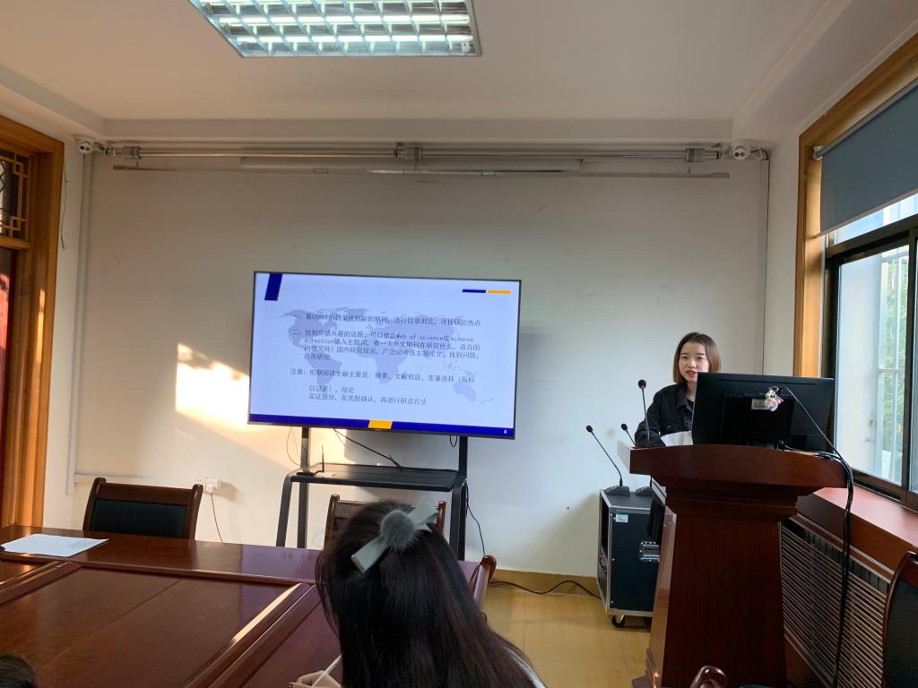 结合经管特色,提高创新能力为目的而召开的。杜新建博士、刘雪燕博士、王莹博士、杨金龙博士和研究生方蓓蓓分别进行了主旨报告。论坛以学术讲座、论文交流和研讨为主要形式,主讲报告人PPT陈述自身的学术经验。现场老师和学生可向报告人进行学术提问,就本学科及相关领域学术论文写作相关问题,进行深入、广泛、自由的学术交流。