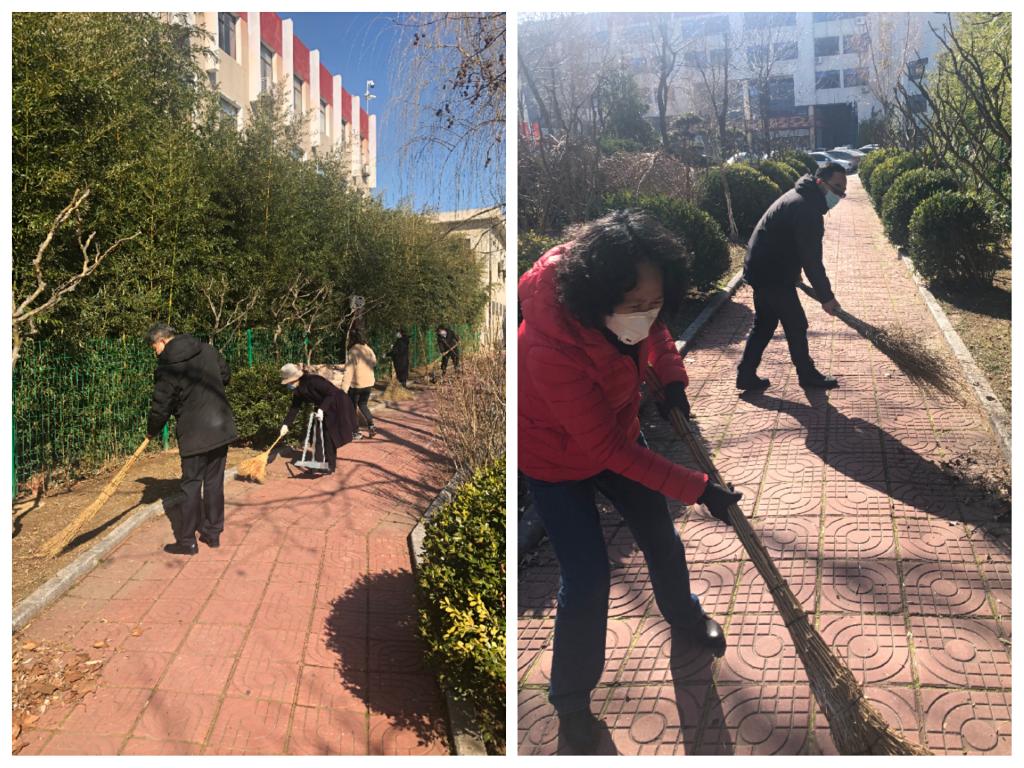 学院党政领导以身作则,无论是卫生大扫除还是之前的清理积雪,都全程参加,积极带领教职工搞好学校卫生环境,从未掉队,学院老师积极报名参加。从文科馆东侧南北小路到教学南路西侧的人行路再到环湖南路北侧小树林前,全体教职工干劲十足,不怕苦、不怕累,清扫过程充满了欢声笑语。