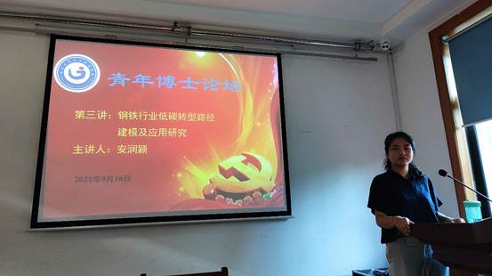 安润颖博士,毕业于北京理工大学管理科学与工程专业。主要研究方向涵盖能源系统建模、工业行业减排路径评估、产业生态学等领域。迄今为止在Applied Energy, Resources, Conservation and Recycling等国际知名期刊上发表学术论文十余篇。任Journal of Cleaner Production, Journal of Industrial Ecology等SCI/SSCI期刊审稿人。安润颖博士围绕“钢铁行业低碳转型路径建模及应用”研究课题,结合碳达峰、碳中和的战略目标,从模型构建、减排潜力评估、技术发展路径制定等方面进行了分享。会后,安润颖博士针对模型的情景设定和参数不确定性与参会老师及研究生进行了深入探讨。