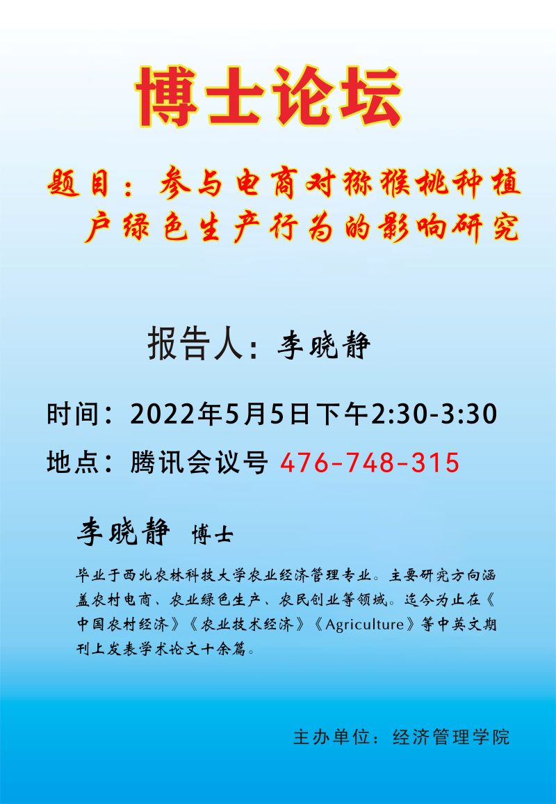 5月5日,麻豆av 在利用腾讯会议举办了“青年博士论坛”第五讲,李晓静博士为此次论坛主讲人。党总支书记张广毅老师以及学科带头人、青年博士教师及各专业研究生等70余人参加了此次讲座,讲座由副院长李振杰副教授主持。