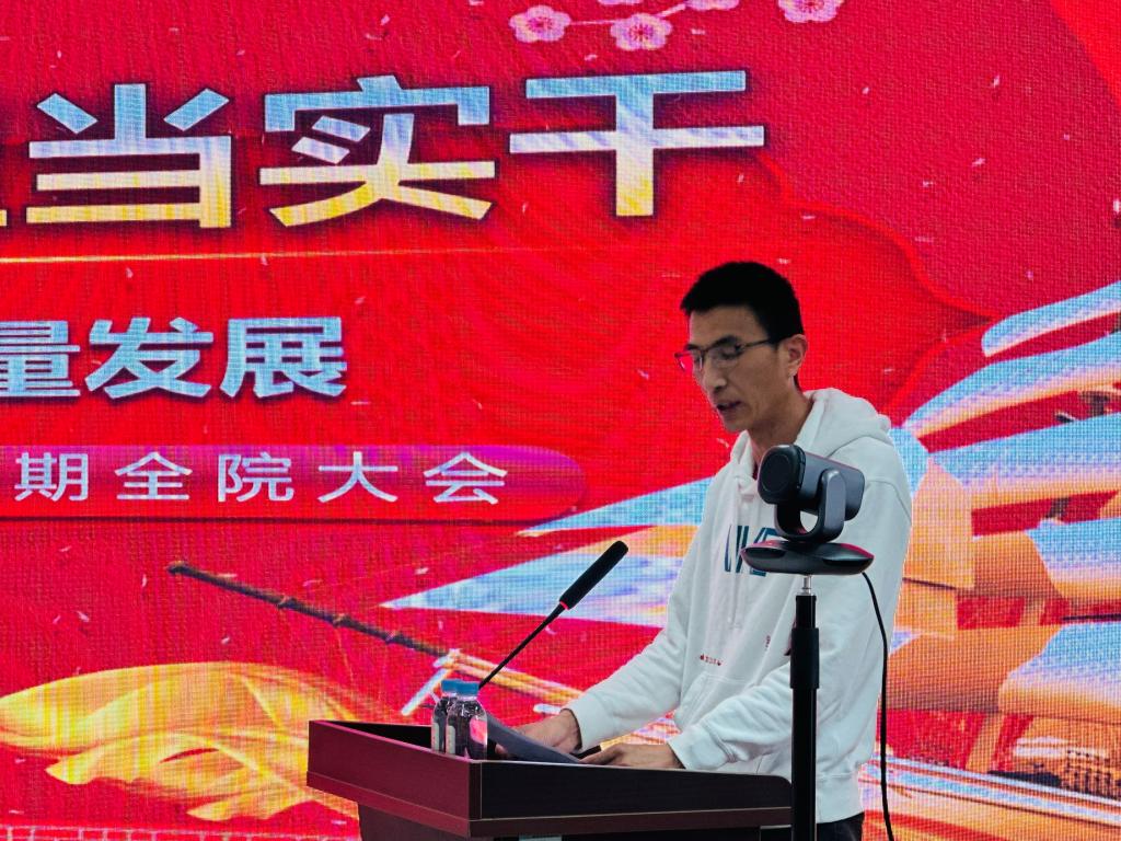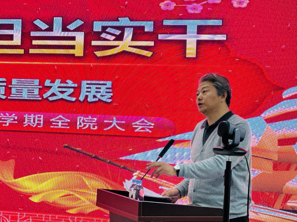 在综合楼召开2023年春季学期全院大会,学院领导班子出席,全体教职工参加。会议由党总支书记张广毅主持。