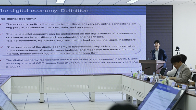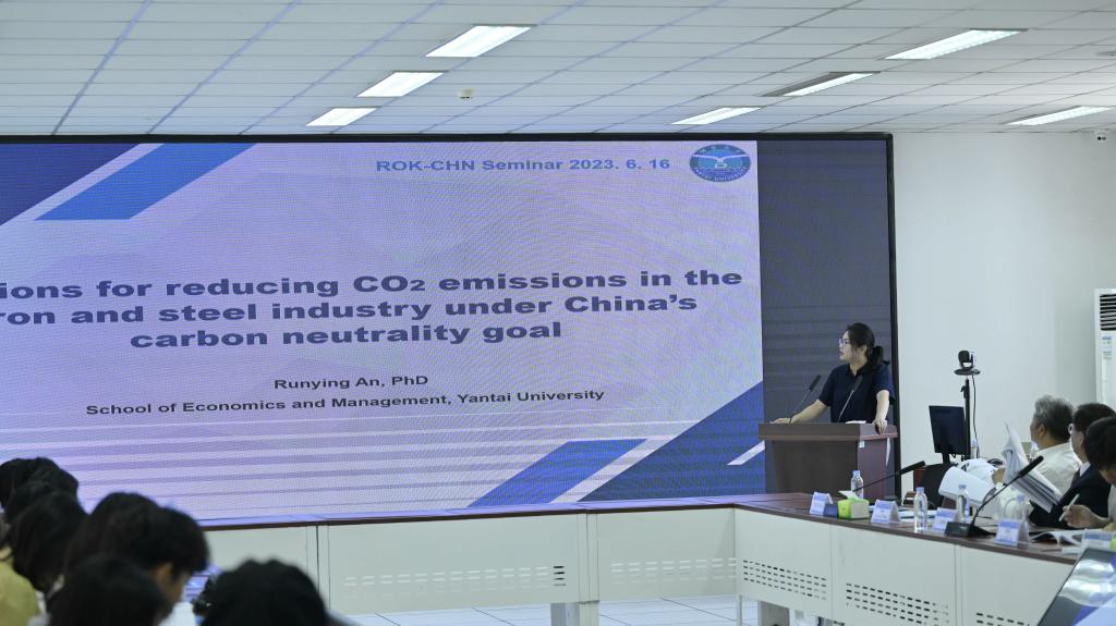 中韩双方就数字经济与环境规制主题开展了研讨,黃省雄、金一权、安孟、安润颖分别做主题报告。报告主题依次为《Digital economy in Gwangju & Jeonnam : Two current issues》、《Environmental Cooperation for Carbon Pricing》、《Study on The Influence of outward Foreign Direct Investment on Environmental Pollution Intensity in China》、《Options for China’s iron and steel industry under the carbon neutrality goal》