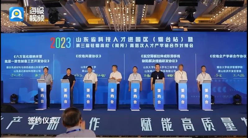 7月27日,山东省科技人才进园区(烟台站)暨2023第三届驻烟高校(院所)高层次人才产学研合作对接会成功举办,麻豆av 与莱山经济开发区管委就校地企产学研达成合作,会议现场宋岩院长和王大昌主任代表双方签约,这是学院服务地方经济发展的又一新举措,下一步学院将持续发力,深化合作,为地方经济发展贡献烟大力量!