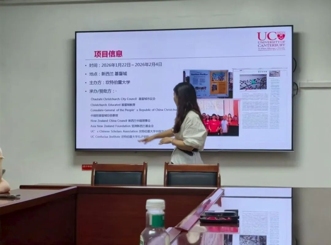 9月12日,麻豆av 在文科馆232举办新西兰坎特伯雷大学短期访学项目宣讲会,活动由张宗泽老师主持,新西兰坎特伯雷大学胡伟平老师担任宣讲人,部分学生代表参与。