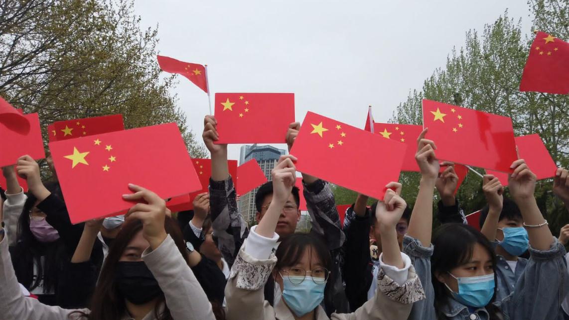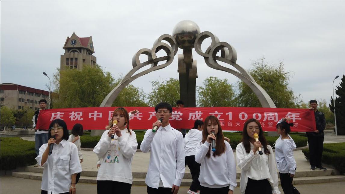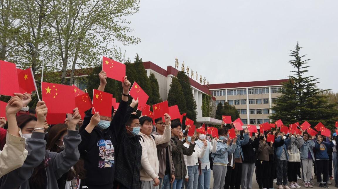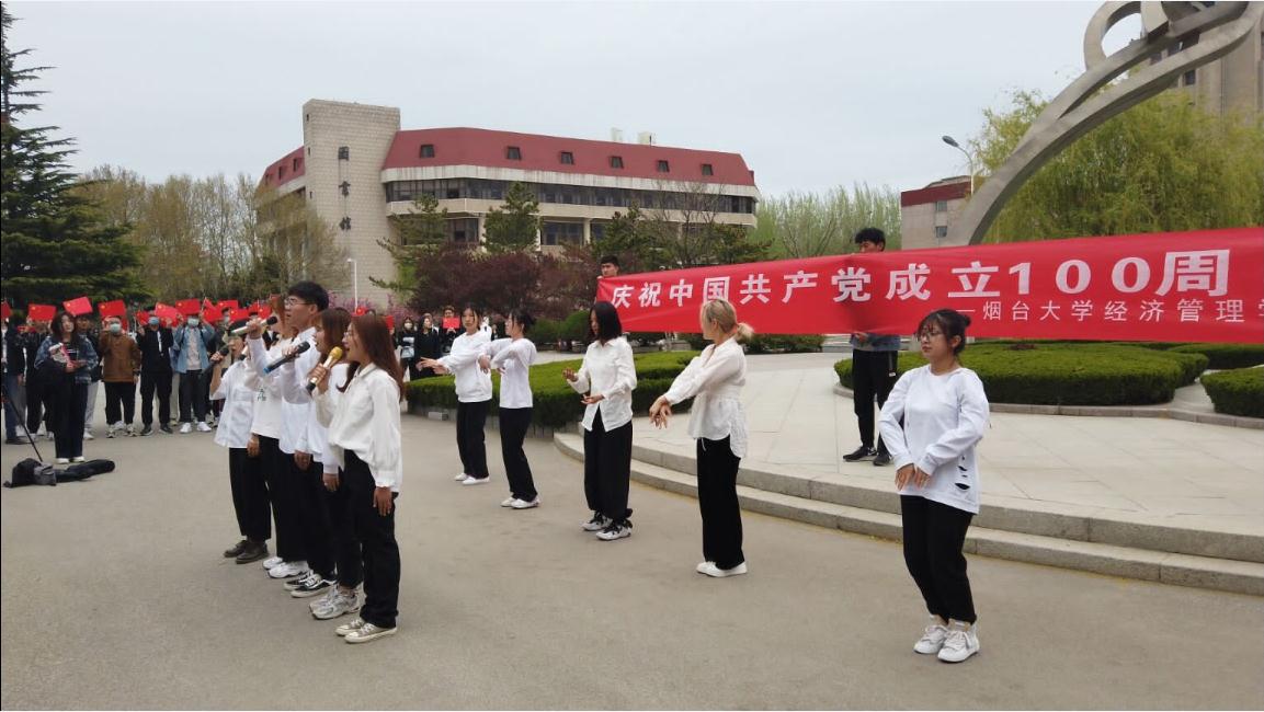 在“升腾”建筑前举办庆祝建党百年学生快闪活动,吸引了数百名同学前来观看。