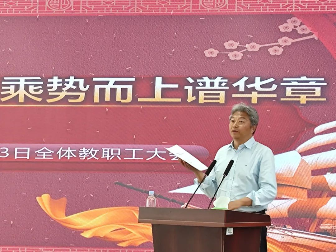 院长宋岩总结了学院近期工作取得的阶段性成就。他表示,成绩的取得离不来全体教职工的共同努力,希望全体教职工立足岗位,对标对表学院重点工作,迎接新一轮本科教学评估,向建院40周年交上满意答卷。